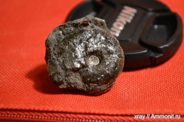 Интересный сохран аммонита Garniericeras subclypeiforme, учитывая что сохранился кальцитовым только пупок, а остальной отпечаток глиняный.Найден при расколе конкреции собственно на ней он и лежит.Диаметр аммонита 4 см.