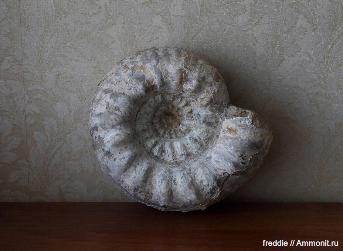 Сохранность этого аммонита далеко не самая хорошая, но это мой первый действительно крупный аммонит. Максимальный размер 23,5 см. Зона Coronatum, подзона Obductum, нижняя часть.