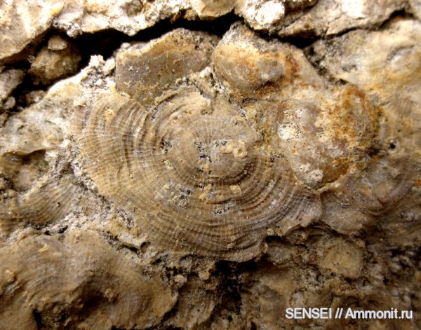 До сих пор попадались лишь фрагменты колонии. Здесь же (я так предполагаю) полная колония, достаточно правильной формы окружности. Таких колоний на блоке ракушечника несколько.