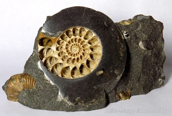 Шикарные "потроха"! Такая сохранность очень ценна для специалистов, изучающих внутреннее строение раковин аммонитов.