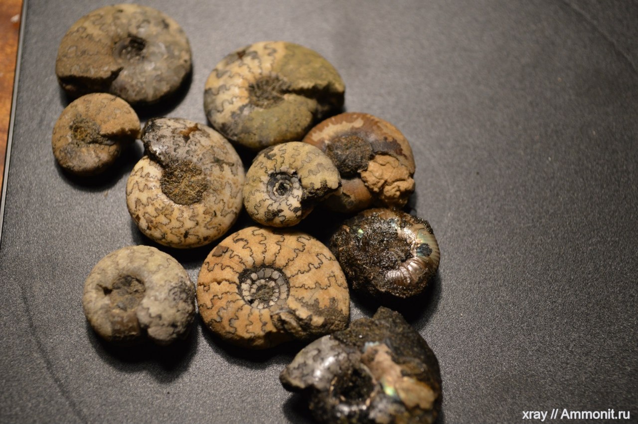 Разгребая остатки конкреций попались вот такие аммонитики у некоторых неплохо открылись пупки)