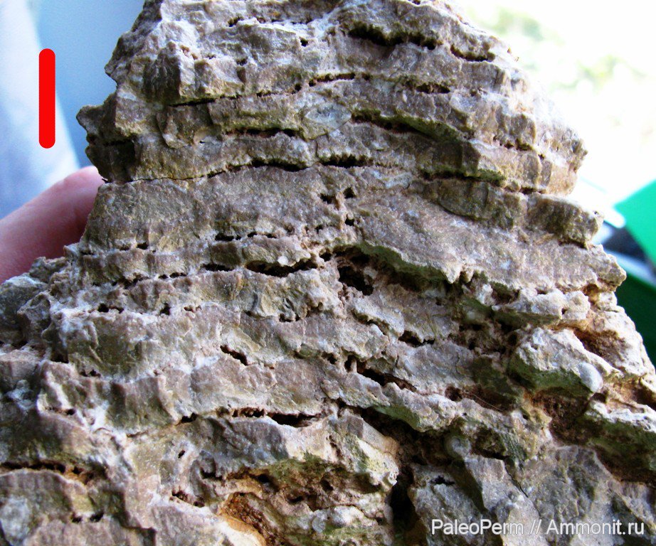 Очень редки находки строматолитов на Чикалинском рифе. Они встречаются только в межрифовой фации.