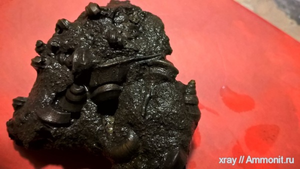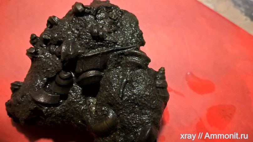 Он был найден в совместной поездке, так что я уверен, что автор фото нас не троллит. Это единичные пиритизированные конкреции из зоны A. alternoides (вот например Пиритовый конгломерат или Рогатый аммонит). Как такового слоя ракушняка там конечно нет, есть единичные конкреции диаметром 3-5 см в глинах. | ||||||