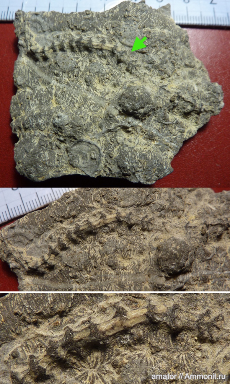 Ежели криноидея, то странная какая-то. Довольно сильно изогнуться, при этом не развалиться и даже не показать явственных сочленений - это не в их характере. В экзотический способ минерализации тоже не особо верится - коралл-то более-менее похож сам на себя, с чего бы обрастателю подвергаться каким-то необычным процессам, решительно меняющим его внешний вид? В общем, я не поддерживаю версию криноидеи. | ||||||