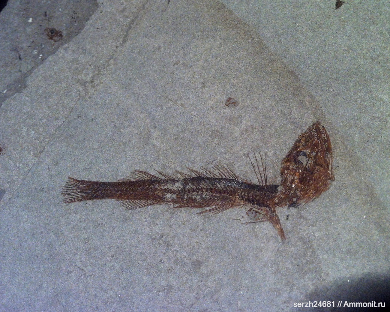 Образец был найден на р.Пшеха .Длинна рыбки 5см.Предположительно может пренадлежать к семейству тресковых, похож на современного черноморского мерланга.