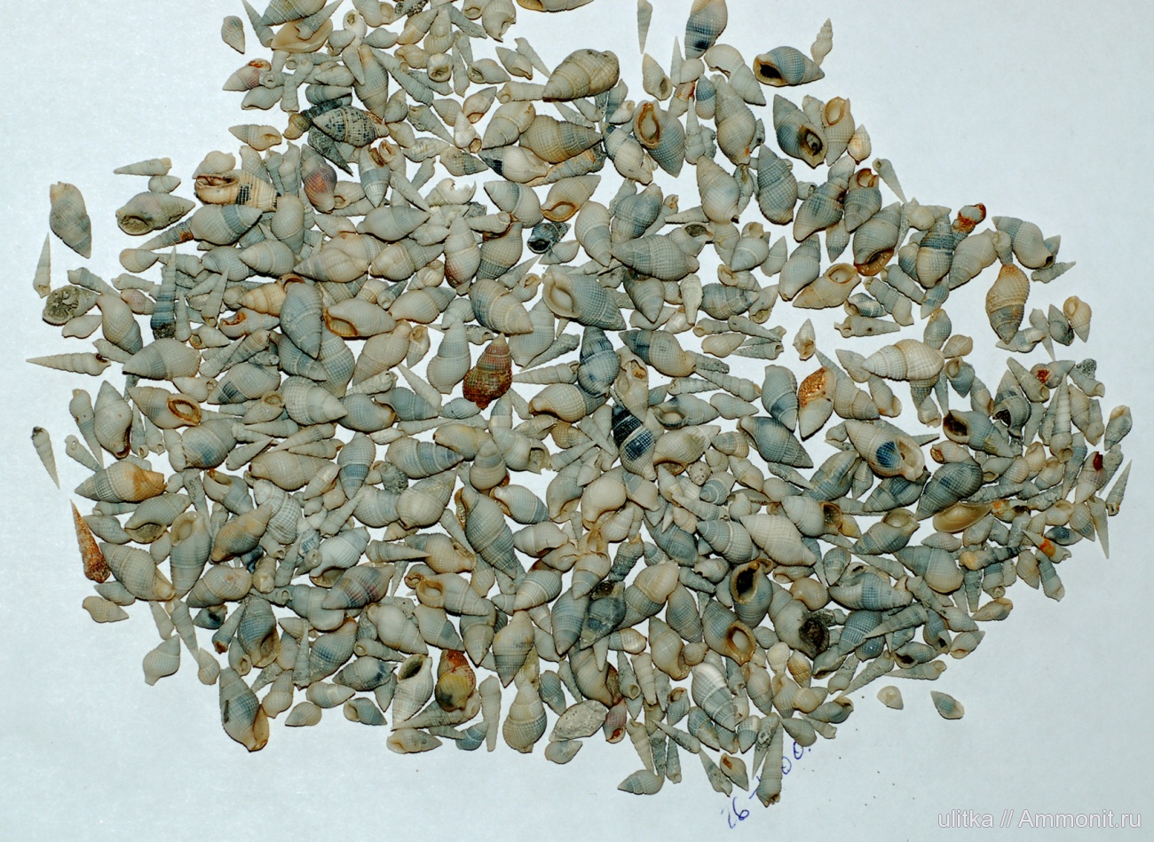 Типичные гастроподы из серых глин (фации зоны E): Bittium digitatum, Nassarius subhoernesi tamanensis, Nassarius scrobiculatus.