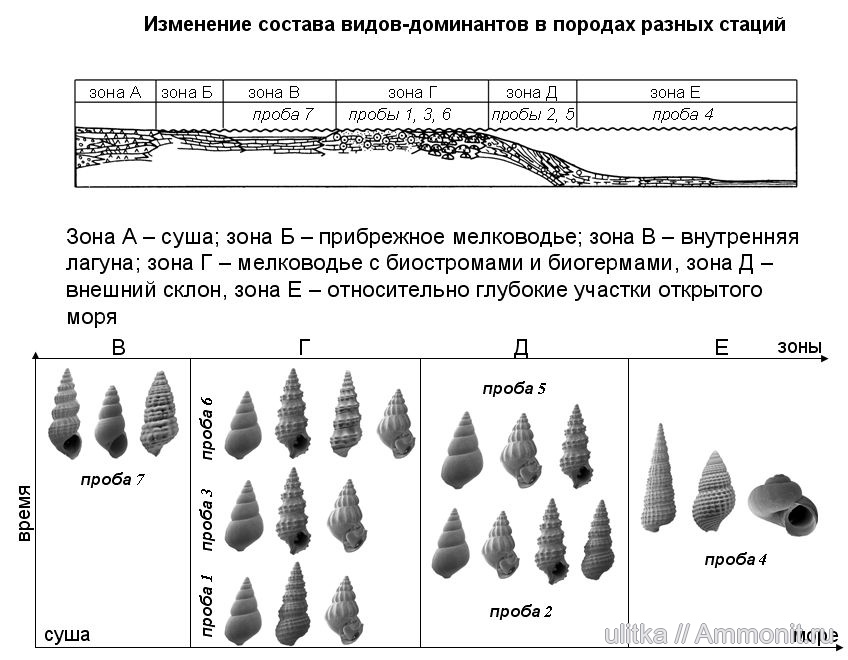 Несколько устаревшая схема распределения гастропод по стациям из презентации к докладу в Горячем Ключе, 2015 г.