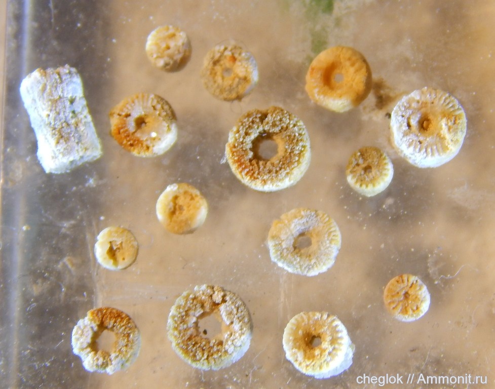 Самый многочисленной фракцией при растворении породы являются членики лилий размером от 1 до 4 мм. Решил представить подборку с 2-3 кг породы.Интересно, почему в Русавкино такие мелкие объекты?