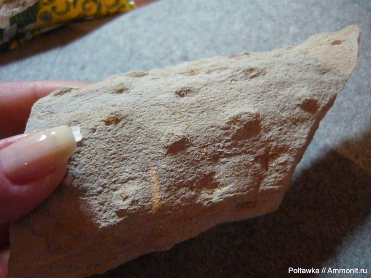 Найден в известняках раннего карбона.Располагался вертикально, сужаясь к низу. Тульская область.Ленинский район.