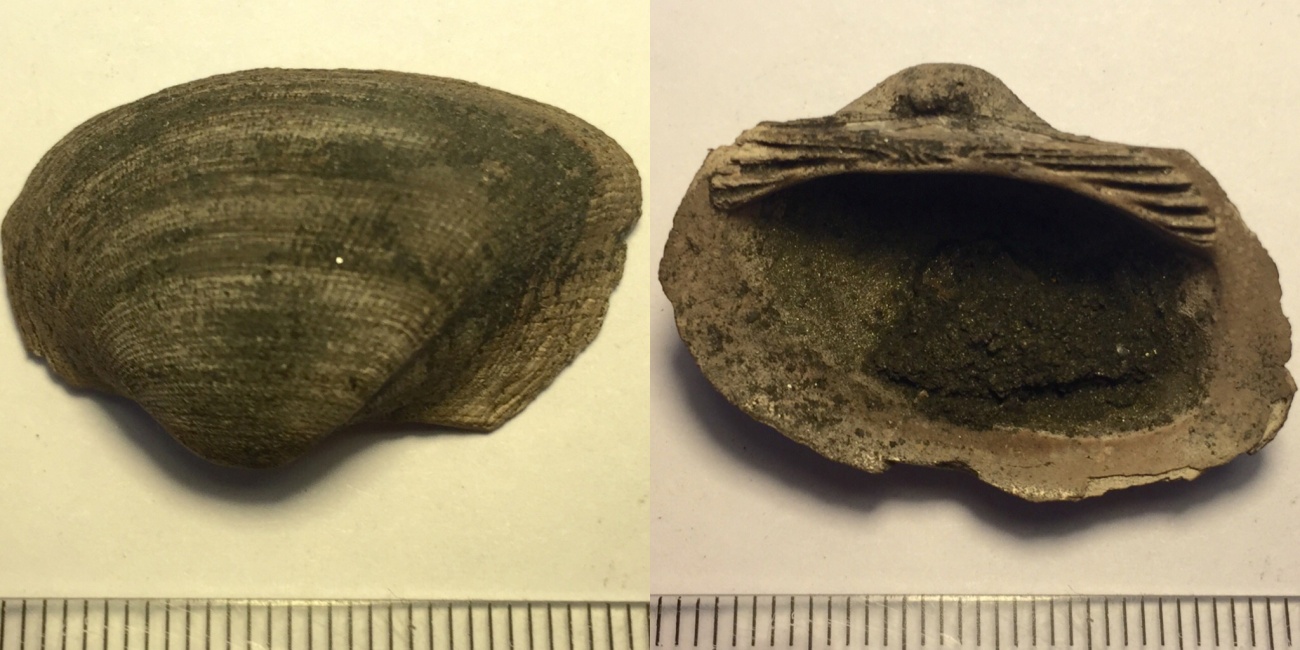 Продолжим банкет филёвских находок. Попалась неординарная двустворка. В справочнике Герасимова ничего подобного не нашёл, зато на сайте случайно и весьма удачно нашёл идентичную.
