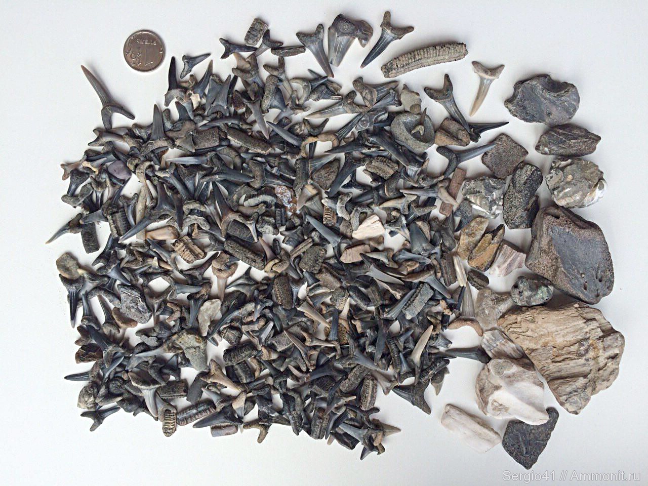 Вчера удалось вырваться второй раз на поиски зубов на Волгу. Так как поиски совмещают семейный отдых на природе пришлось заинтересовывать членов семьи призами за самый большой зуб, самый необычный и т.д. :-))) Сборы удались больше чем первый раз, хотя ломанных зубов было поболее. Зубов крокодила и химеровых рыб не нашли. Очень много зубных пластин ската (одна даже 45мм.) Молюски, куски окаменелового дерева, окаменелые фрагменты костей.