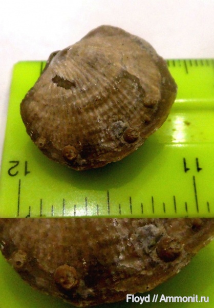 Похоже на поселения червей-трубкожилов на этой небольшой брахиоподке. Однако конкретно кто это не знаю. Сфоткал как мог.