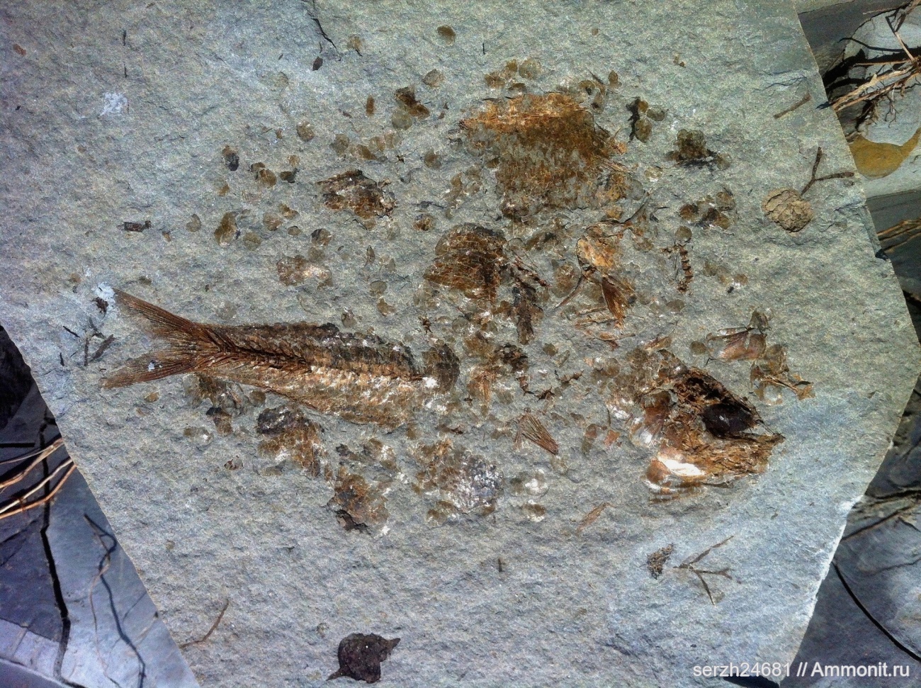 Образец был найден на р.Пшеха.Итересно её раскатало. Длинна рыбы 15см.Предположительно принадлежит к семейству сельдевые (Clupea sp ).фото