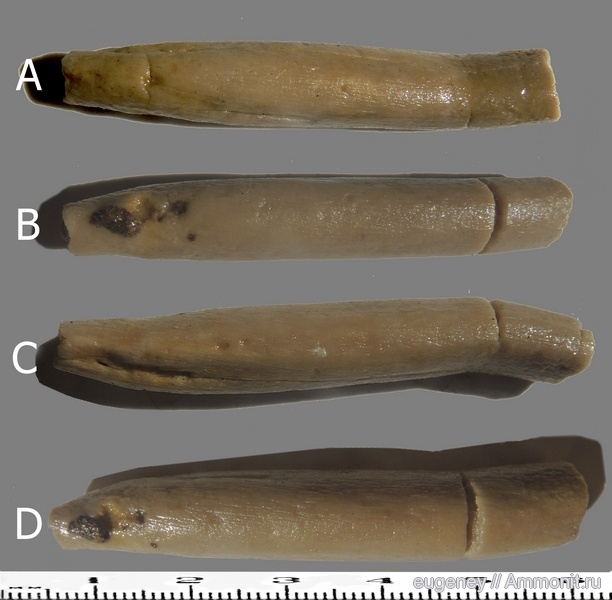 Этот экземпляр найден в том же месте,что и "Деформированный белемнит" в карьере села Борщево.Смею полагать,что этот экземпляр получил эти повреждения при жизни.Видны следы насилия и надломанная часть сохранилась благодаря прижизненной эластичности.