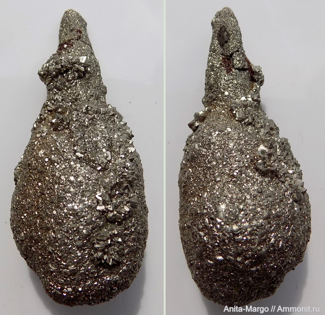 Размер белемнита 65 мм. Полностью оброс пиритом.