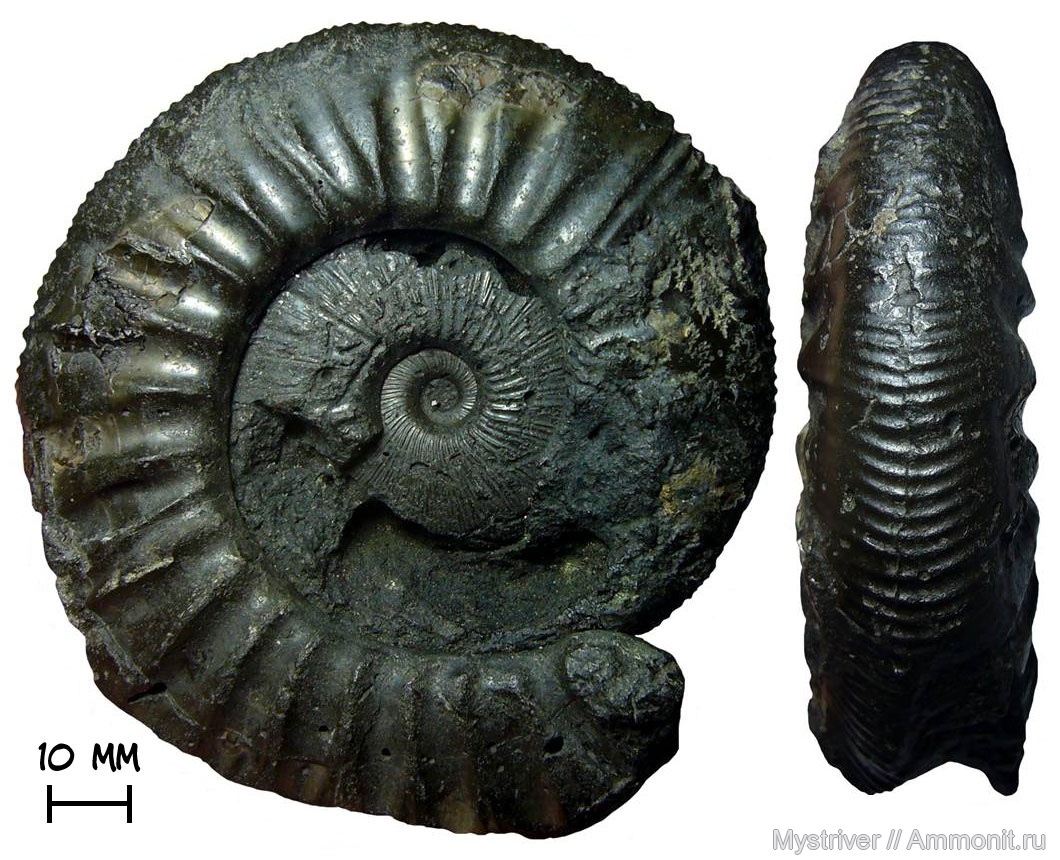 Как-то мне В.В.Митта объяснял, что зарайскензис характеризуется зарайскитовыми начальными оборотами( двураздельные рёбра,как у пересфинктов), в отличии от Vergatites gerasimovi с вергатитовыми нач.оборотами(на фоне - мелких рёбер - стабильные сильные приподнятые одиночные). Далее- частые многоветвистые рёбра на уплощенных боках и приплюснутом венторе фрагмакона,так как это видно на фото. Жилые камеры с идентичной скульптурой,как у предка и потомка. На фото вергатитес герасимови ранняя форма,предположительно- микроконх. | ||||||