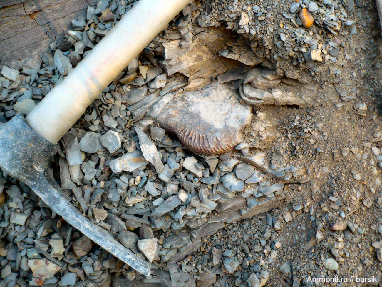 Хорошее фото! Так и хочется покопаться там :) И аммонит хорошего размера, судя по прилагаемой наглядной линейке :) А жара и правда кошмарная :( | ||||||