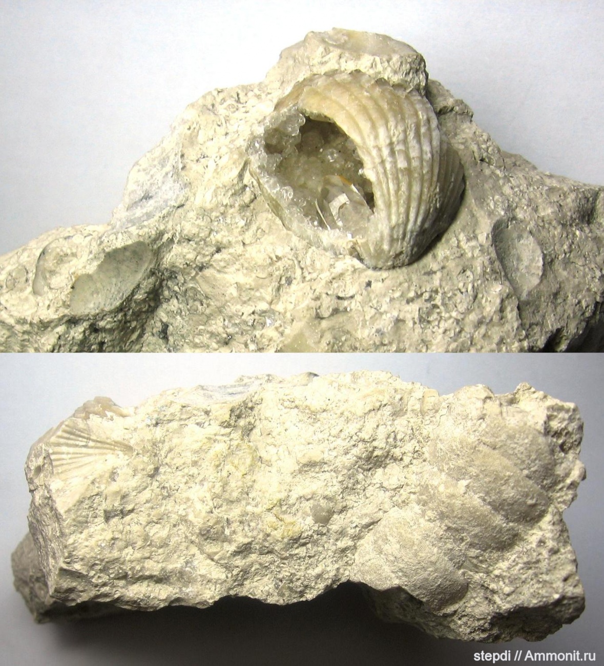 Кстати, брахиопода замещена не кальцитом, а кварцем (кристаллики шестигранные). | ||||||