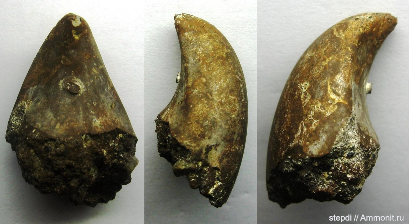 Вот и я о когте или зубе подумал. Ядро какого-нибудь хитроумного моллюска это не может быть? Микроструктура вряд ли поможет, так как объект выглядит однородным по составу. Не знаю, полезно это или нет, но с одной стороны переход от выпуклой поверхности к вогнутой имеет плавную форму, а с другой стороны хараткеризуется наличием ребра, которое видно на правой части снимка. | ||||||