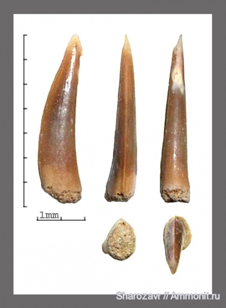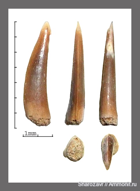 Зубы подобной формы есть во многих эпохах. По крайней мере кампан и сеноман у меня есть. | ||||||