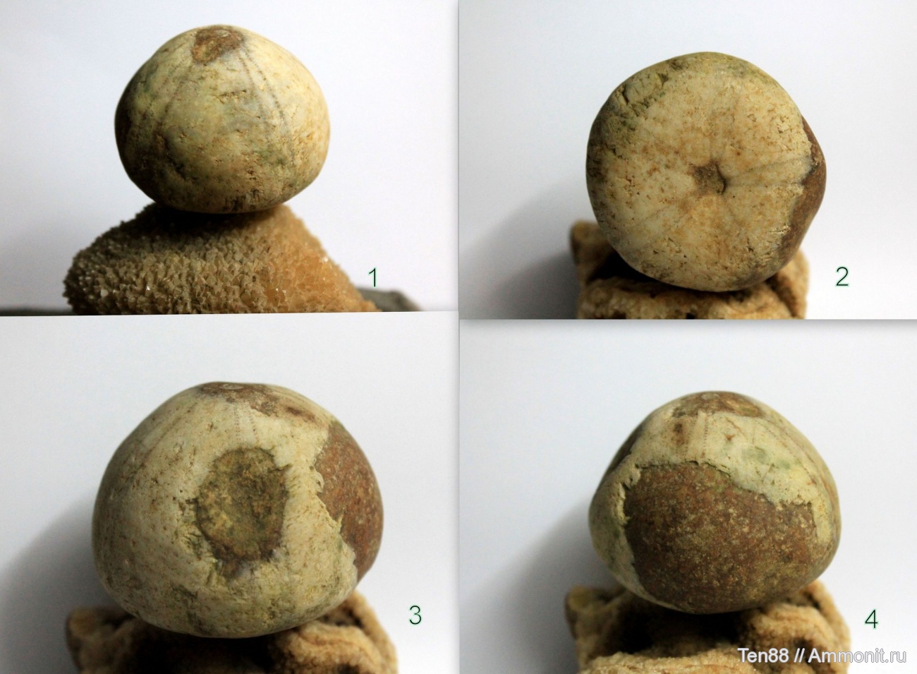 Этого симпатичного ежика нашел наш сын, который теперь не часто с нами выезжает. Диаметр ежика по основанию 5,7 см, высота 4,1 см. Фото 1 - общий вид, 2- низ, 3 - повреждение (как бы вмятина), которое, по всей видимости, было приобретено в процессе захоронения, ну и 4 - конечно тут ежика немножко не хватает :), но все равно хороший. Ну и конечно самым главным помощником в поисках был внук фото