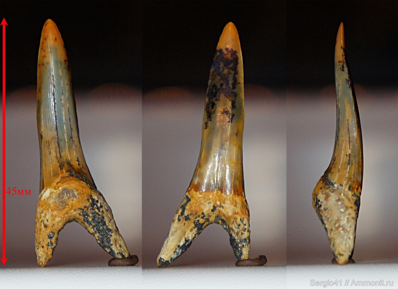 Последний месяц не посещал никаких раскопок в связи с травмой ноги. Но сегодня, по дороге, на дачу решил снова заехать на пол часика в обнаруженный не так давно карьер. Решил не набирать гравий в мешок, а прямо там смотреть. Нашел всего 6 зубов, в том числе и этот. Не смотря на то, что это снова striatolamia и с поврежденным корнем этот зуб стал самым большим в моей коллекции зубом этой акулы. 45 мм. И, кстати, понял, что сито для этих целей нужно побольше чем 25 см. в диаметре.
