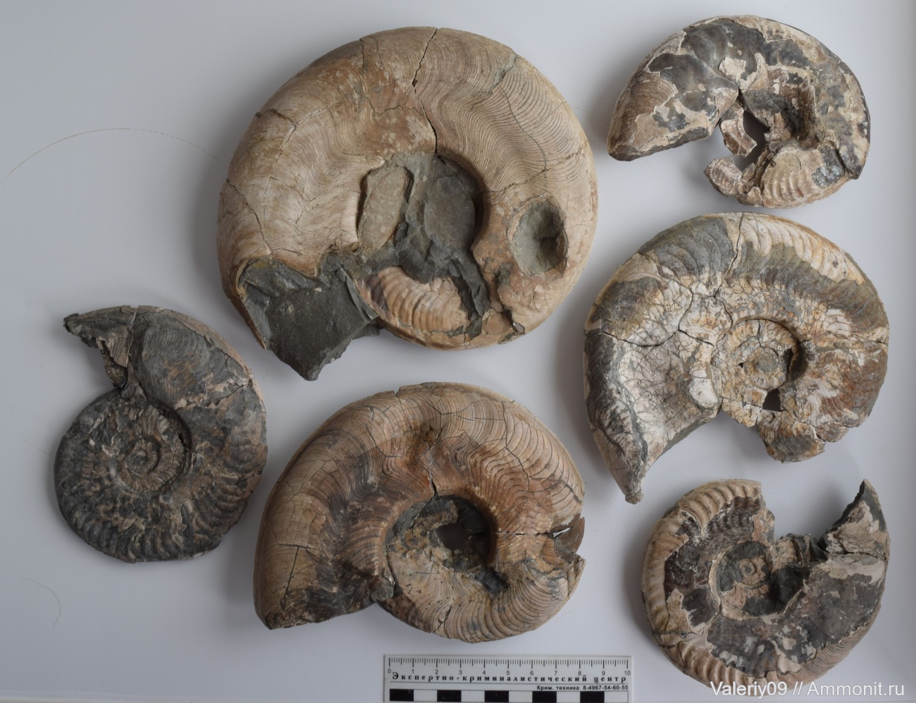 Собраны в разное время и склеены по кусочкам. Аммонит под линейкой найден два дня назад.