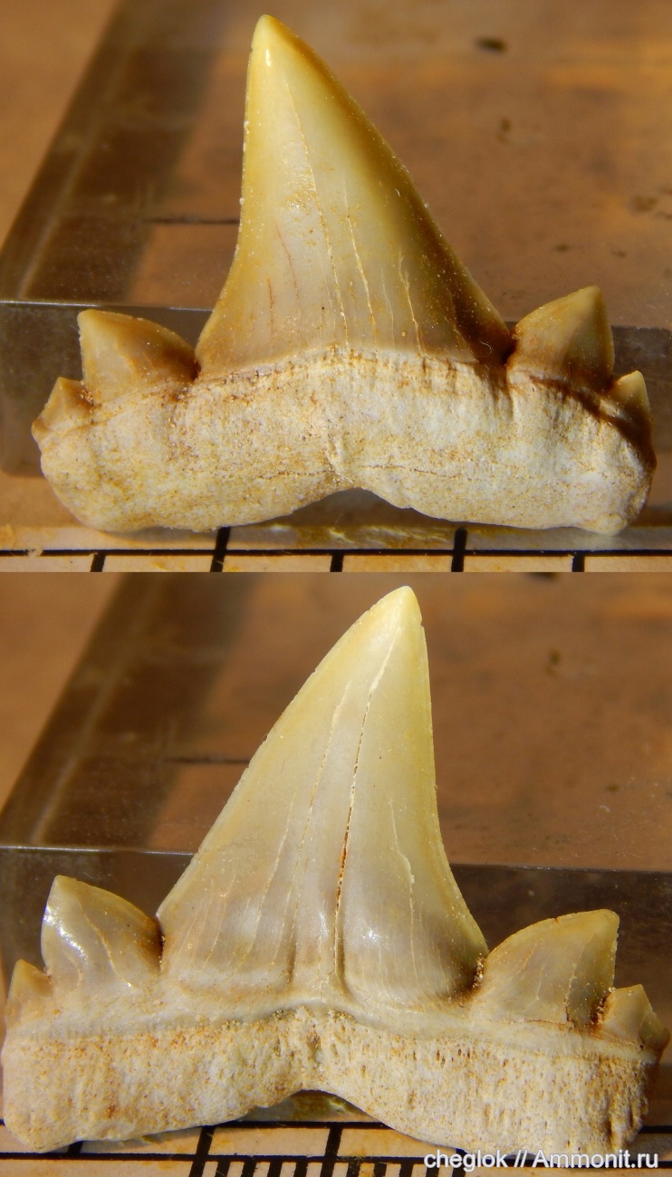 Среди массы зубов скваликораксов, увиденных мною недавно (партия зубов родом из Марокко), было несколько таких вот интересных зубов с двумя боковыми зубчиками. Владимир Лопырёв определил как Cretolamna maroccana. Размер около 23 мм в ширину, 21 мм в высоту.
