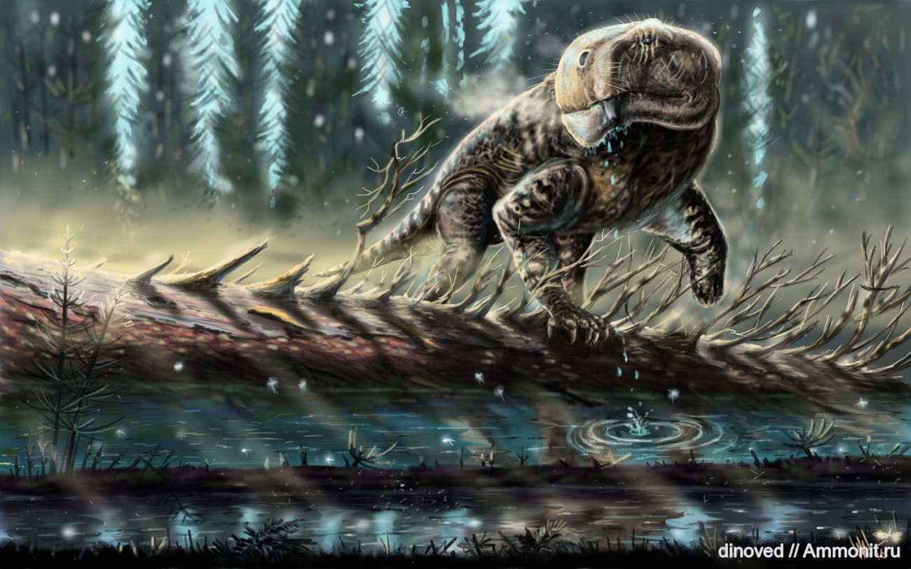 Знакомьтесь, это "Александр"- пожилой самец Иностранцевии. Он родился и всю свою жизнь провел здесь: на берегу большой, полноводной реки, неспешно несущей свои прохладные воды на месте современного Архангельского края в далеком пермском периоде.