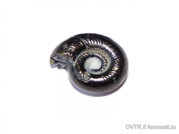 Довольно редкий для Кавказа аммонит Costidiscus sp. диаметром 1 см. Раковина замещена пиритом. За одну поездку таких набирается или один, или ноль. На сайте он вообще первый.