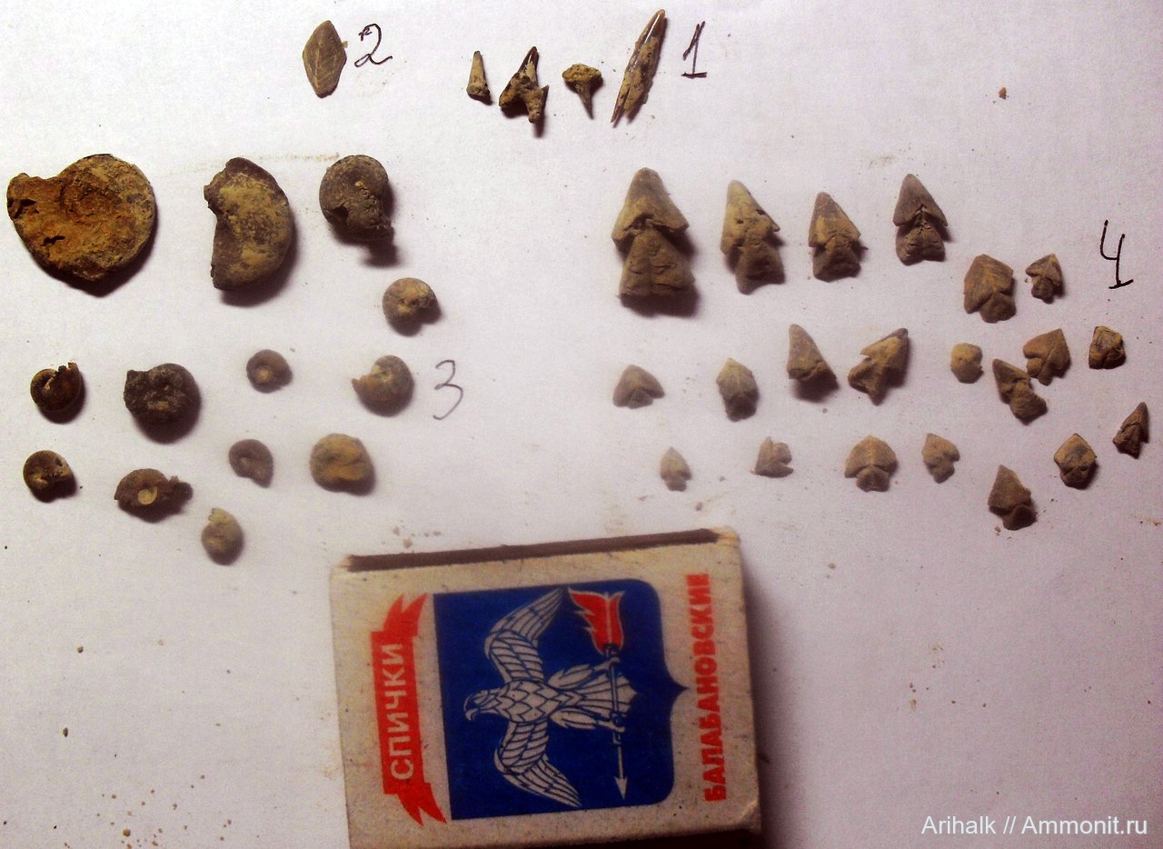 Вот случайно нашел таки свою фото с небольшим но полным отчетом, что мне удалось собрать на Аптских глинах. По номерам на снимке: №1, - зубы акул (4 шт), №2, - по всей видимости крышка аммонита, которой он закрывался в раковине, №3, - аптские аммониты, №4, - ринхлиты (фото которых я уже выложил тут).