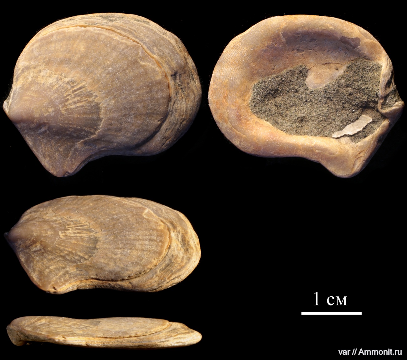 Разные "уши" у гребешков многих видов, в том числе у черноморского Flexopecten ponticus. И некоторая асимметрия раковины у современных тоже встречается - Haumea loxoides. Но нельзя наверное исключить и неравномерное стирание, т.к. в месте где крепятся мышцы раковина мощнее. Вообще то выглядит он бывало). | ||||||