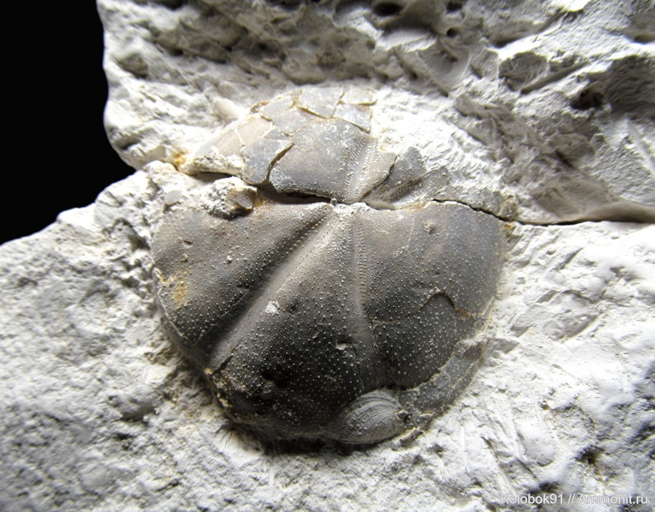 Несмотря на не очень хорошую сохранность, данный образец является большой удачей, учитывая его диаметр в 7 см. Попадаются и более крупные ежи, но чаще всего все они рассыпаются на глазах либо просто сильно раздавлены.