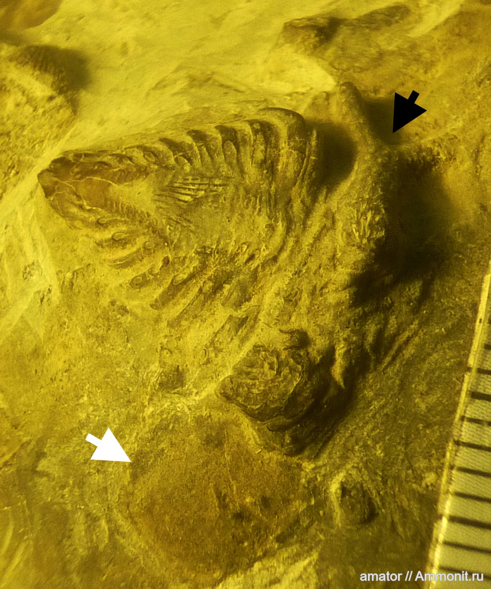 то что выше белой стрелки и есть пигидий трилобита, а вот то на что стрелка показывает, как рах и непонятно | ||||||