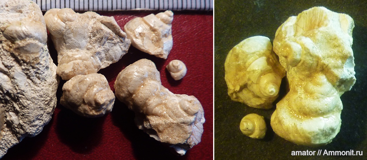 Брюхоногие моллюски, "преобладающие" в миоценовой породе в окресностях г. Кременец (Украина, Тернопольская обл.)