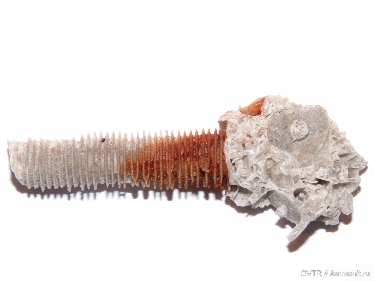 Впервые попал на Комсомольское месторождение, был поражен видом и разнообразием форм сохранности криноидей. Легендарные "шурупы", сводящие с ума уфологов:-) Длина этого образца - 5см, диаметр 1 см. Окремнелые нижнекарбоновые известняки.