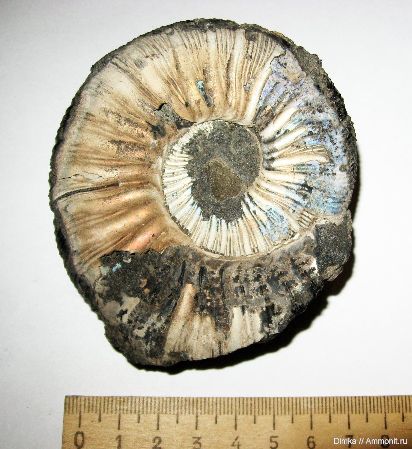 Аммонит найден во Мневниках, в средневолжских фосфоритах, в 1995 году. Диаметр раковины 88 мм.