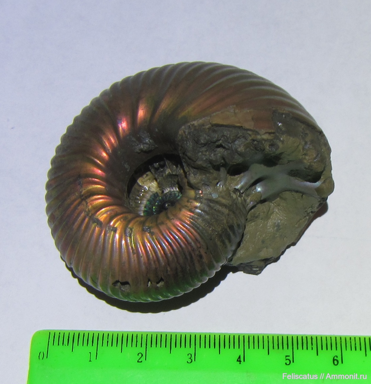 Остаток от макроконха Eboraciceras carinatum - 50 х 62 мм. Внешняя часть была сильно раздавлена и сохранить ее не удалось. Так же отсутствует "пупочек" (изначально), сохранился только его отпечаток внутри на твердой породе, в красивом зеленом оттенке. Чуть позже обновлю на составное фото с разными ракурсами.