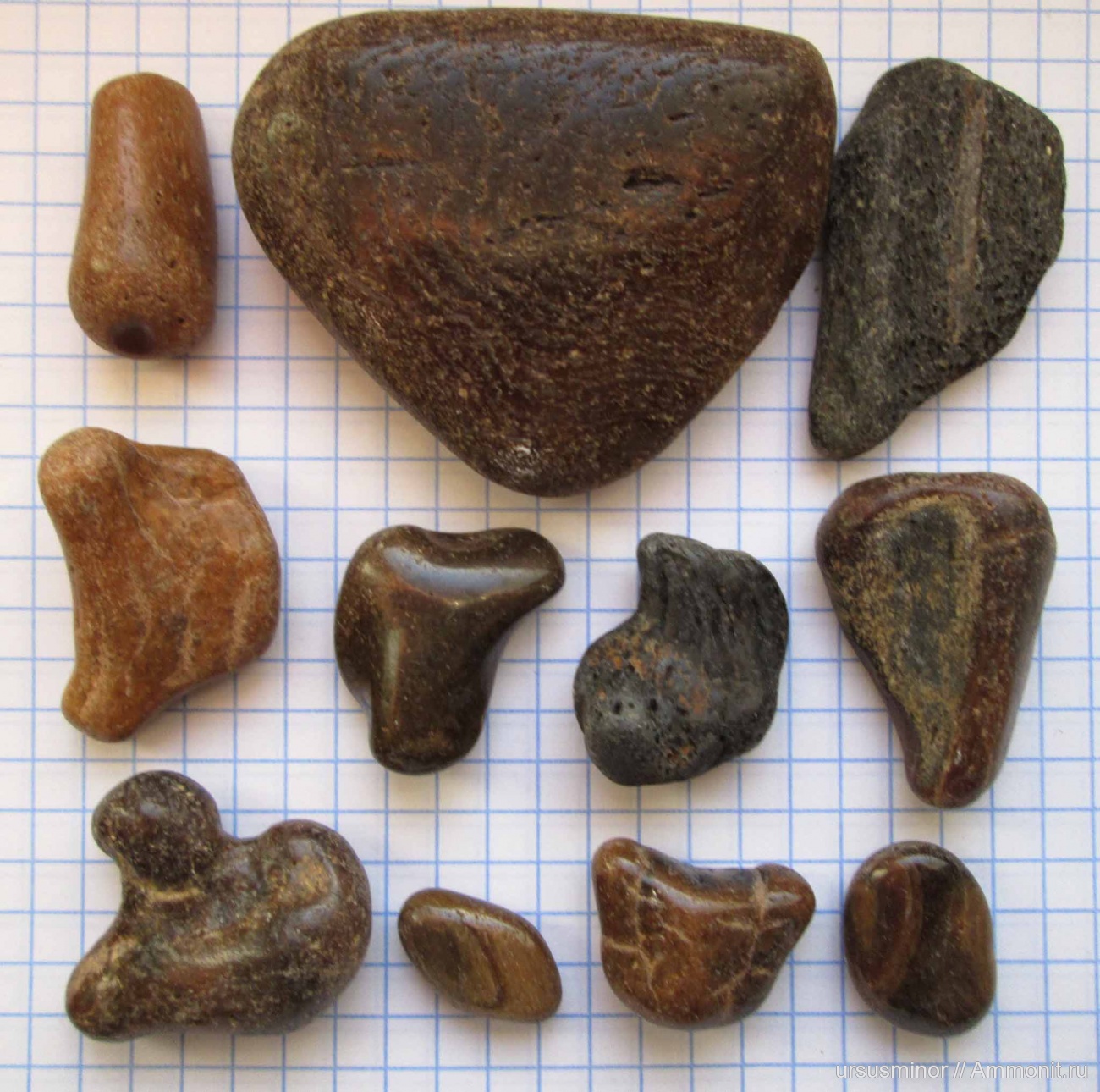 У нас фосфоритами замещались кости. Я когда сомневаюсь, если не жалко скол делаю. Структуру кости сразу видно. Тоже тюленьих много. | ||||||