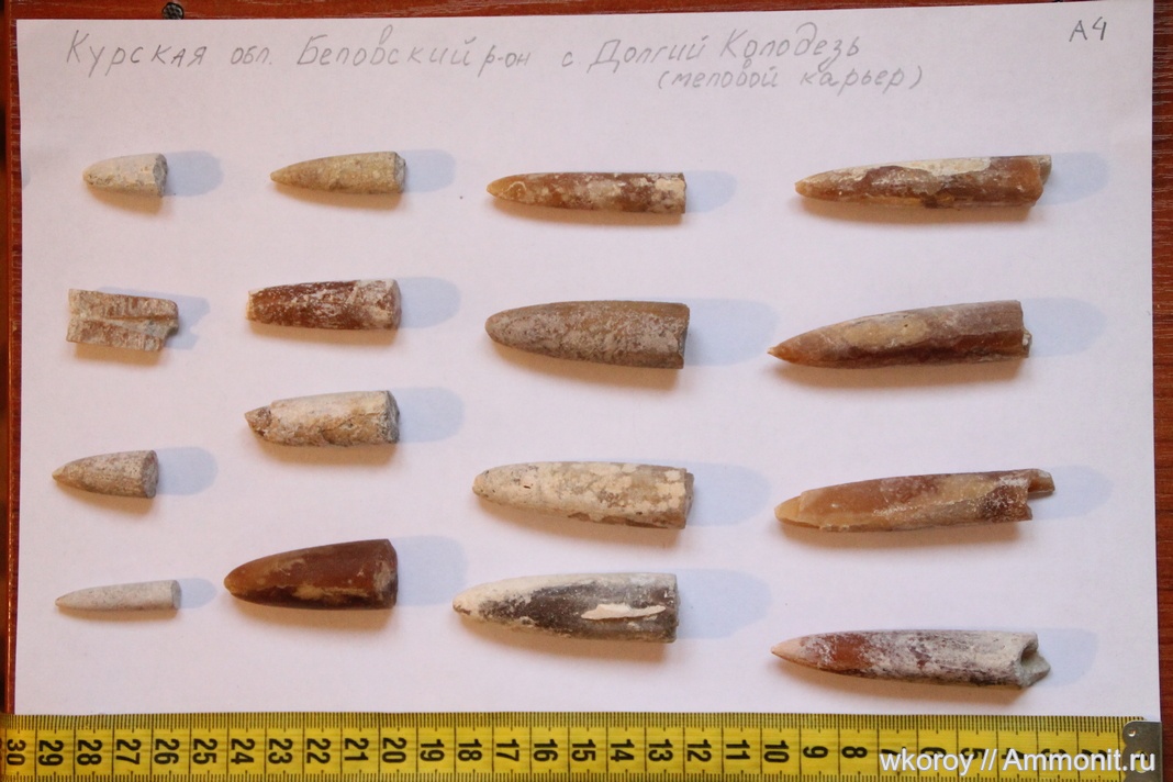 Белемниты найденные в меловом карьере Курской области с. Долгий Колодезь Беловского района