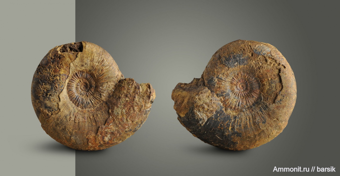 Этот аммонит – результат общей работы экспедиции уже далекой весны 2014г. Найден он был моим братом прямо из кабины автомобиля, гладкая часть раковины резко выделялась под моросящим дождем. Извлечен и препарирован уважаемым Митта В.В., ну и мне досталось его снять.