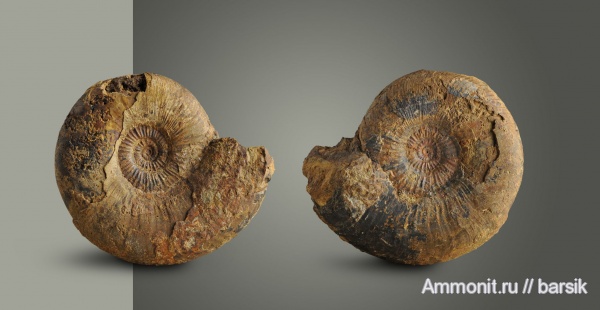Интересный аммонит, очень ребристые центральные обороты. | ||||||