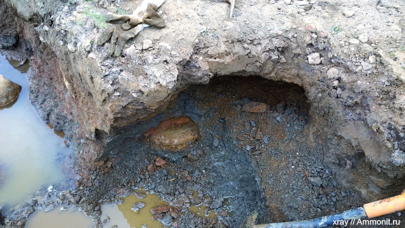 К сожалению кальцитовый бок выкрошился, но в целом аммонит удалось увезти с собой почти целехоньким.На фото видно как аммонит располагался в слое до извлечения.