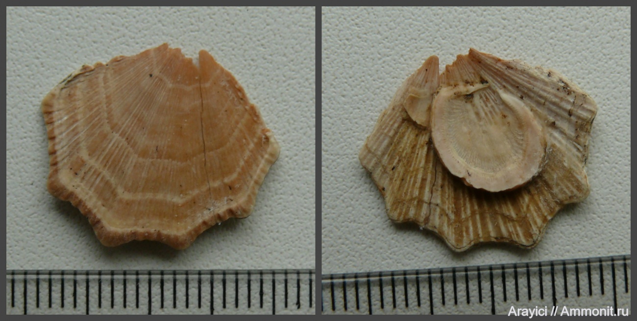 Да, мой недосмотр. Ввела в заблуждение небольшая вогнутость поверхности со стороны крепления поселенца и то, что эти створки (воможно Neithea sexcostata?) в сети обычно показаны, получается, внутренней стороной. | ||||||
