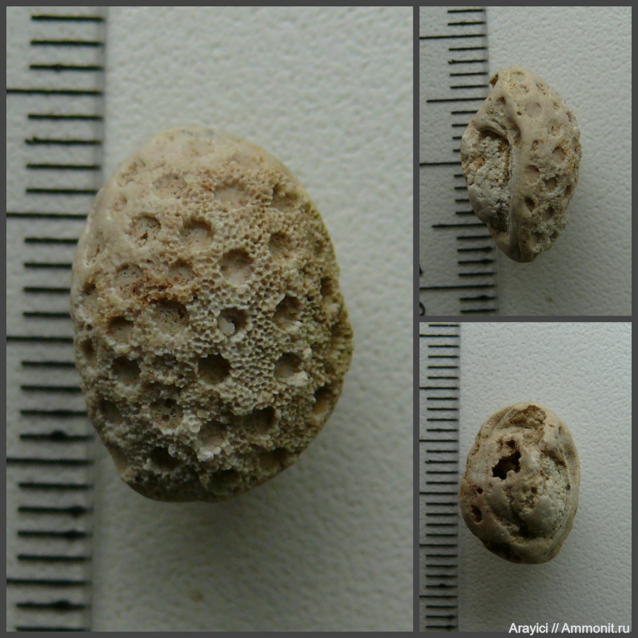 Этот коралл тоже из морены? Трудно понять были там септы,но скорее всего были,для восьмилучевого кораллиты слишком велики. Если были то этот коралл близок к роду Astraeopora.А более определённо просто Scleracninia. | ||||||