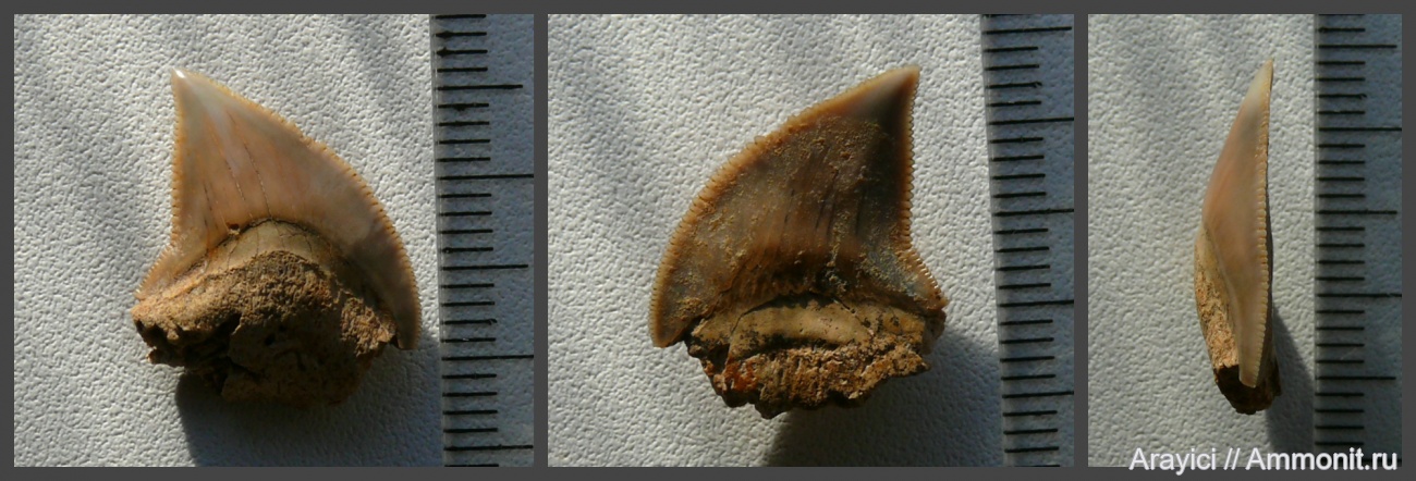 Squalicorax cf. kaupi. Очень неплохая сохранность для переотложенного зуба. | ||||||