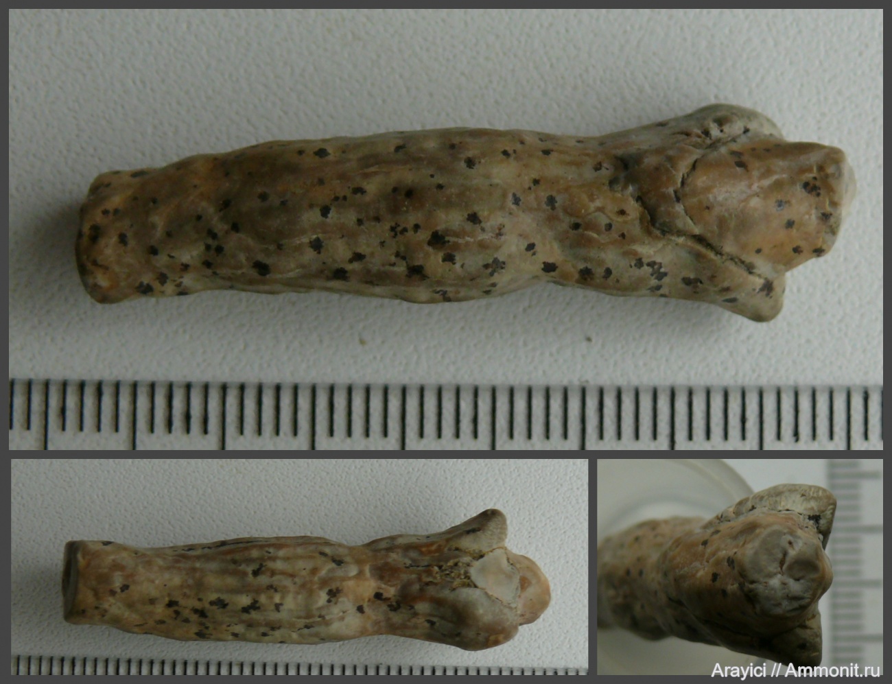 Обломков губок, особенно Rhizopoterion, пруд пруди, но не один не похож на данный фрагмент. На сколе подобных фрагментов едва видно тонкий непроходимый канал по центру. Подобная палочка уже обсуждалась здесь http://www.ammonit.ru/foto/50497.htm. | ||||||