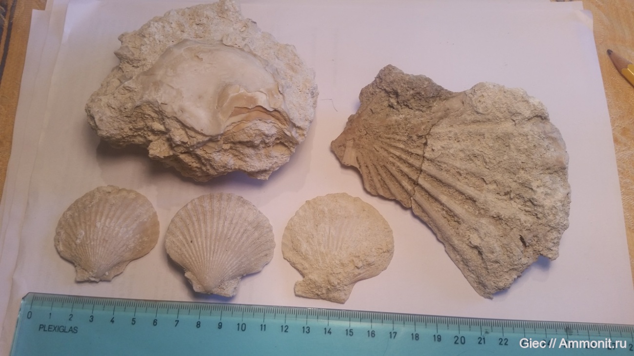 Двустворчатые моллюски: Морские гребешки (Bivalvia:Pectinidae). Тот что крупный может быть Pecten maximus или P. jacobaeus.
