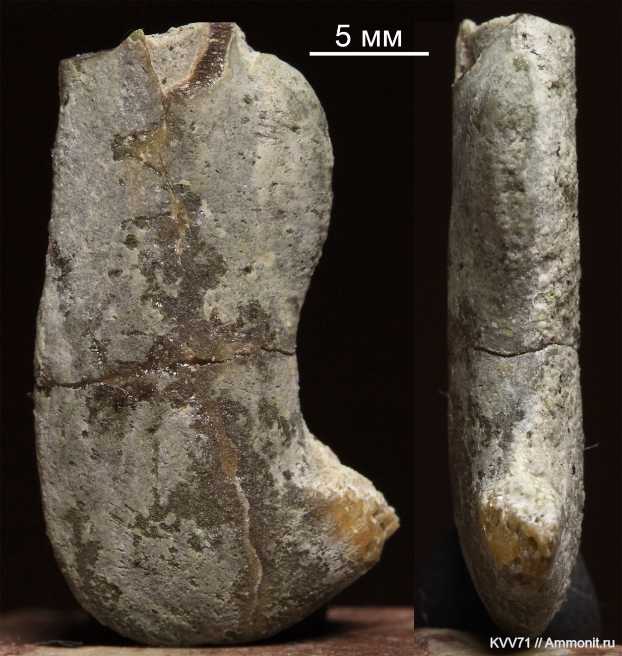 Поистине экзотическое дополнение коллекции! :) Поздравляю! Не думал, что и среди ростров белемнитов могут быть свои диковины :) | ||||||