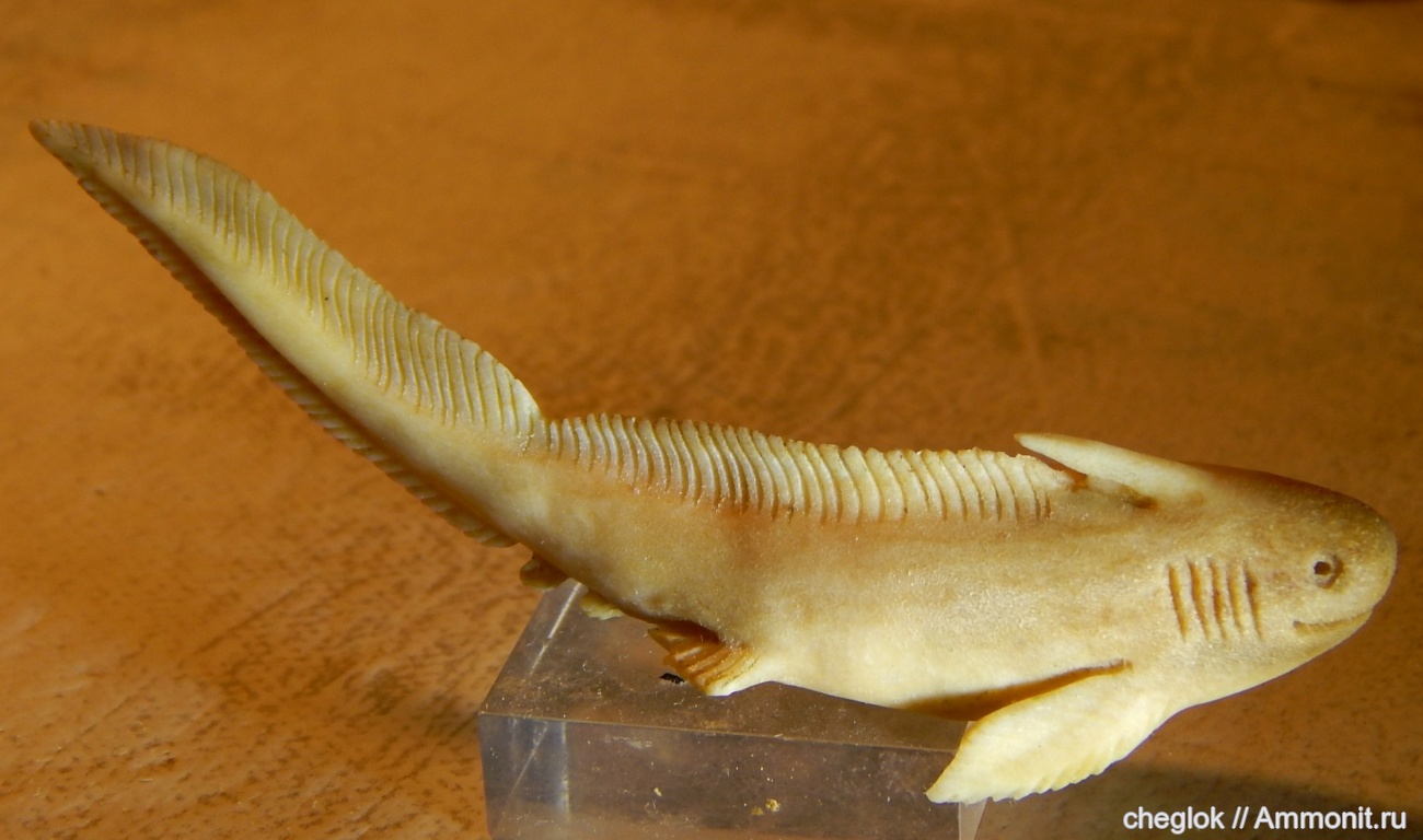 По моей просьбе мастер резьбы по кости изготовил для выступления с презентацией зубов на школьной конференции модельки карбоновых акул. Длина этой фигурки 95 мм. Имелся в виду ксенакант.